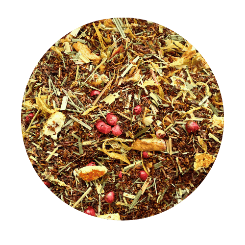 Ta mieszanka to pełnia ciepła i energii. Rooibos tworzy delikatną, miodową bazę, a pomarańcza nadaje jej cytrusowej świeżości i słodyczy. Subtelna trawa cytrynowa i odrobina czerwonego pieprzu dodają kompozycji lekko pikantnego charakteru, który rozgrzewa od pierwszego łyku.